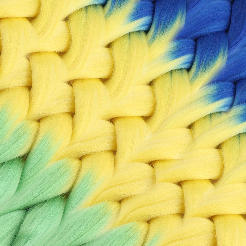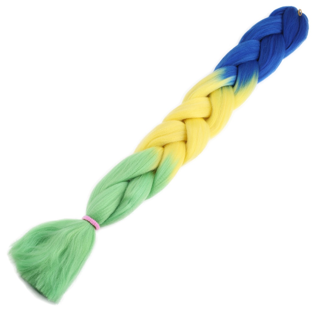 Afrika Örgüsü Ve Rasta İçin Sentetik Ombreli Saç - Lacivert / Sarı / Fıstık Yeşili