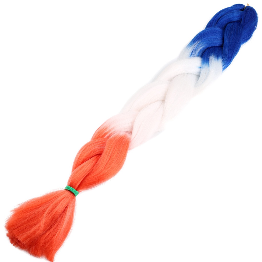 Afrika Örgüsü Ve Rasta İçin Sentetik Ombreli Saç - Mavi / Beyaz / Turuncu