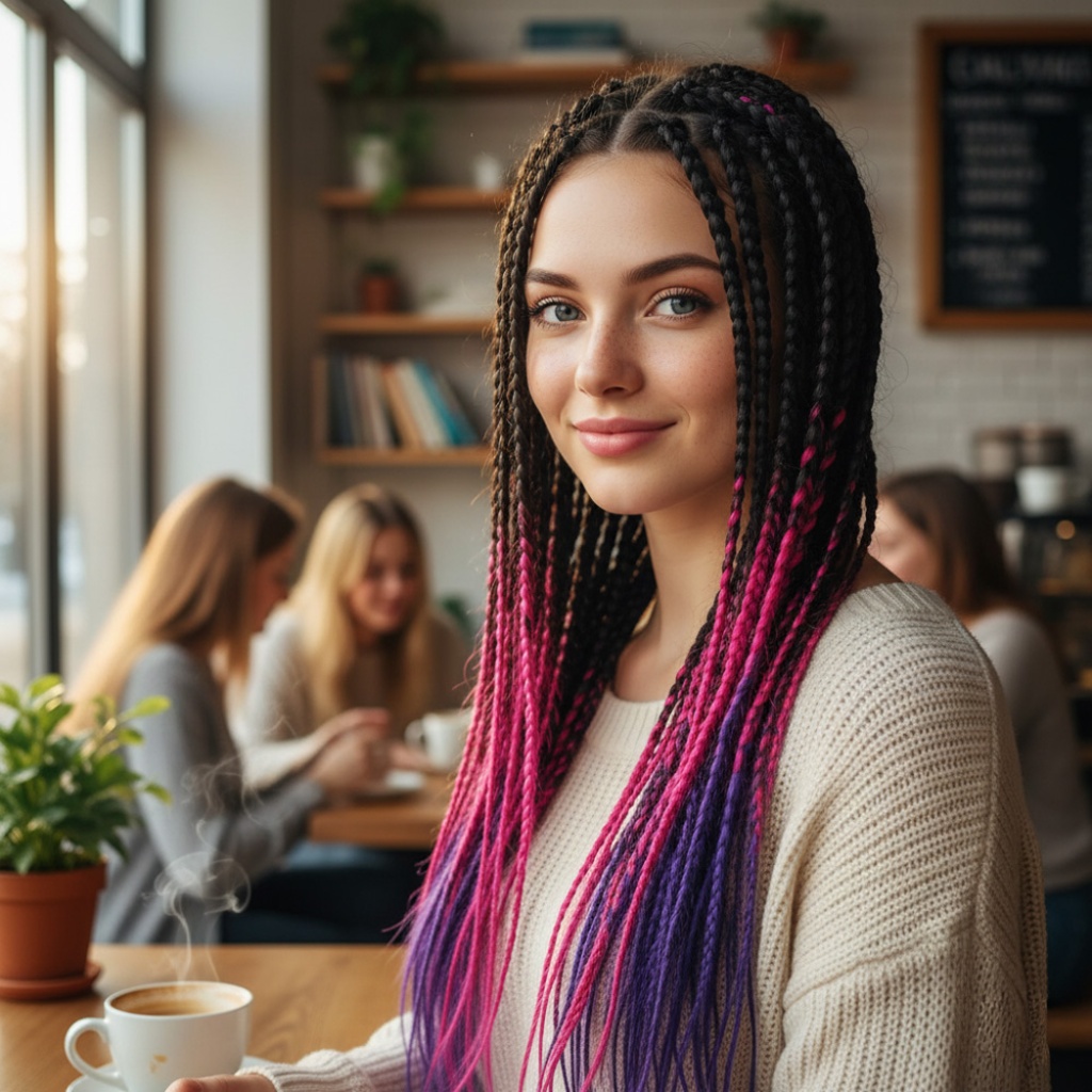 Afrika Örgüsü Ve Rasta İçin Sentetik Ombreli Saç - Siyah / Fuşya / Mor