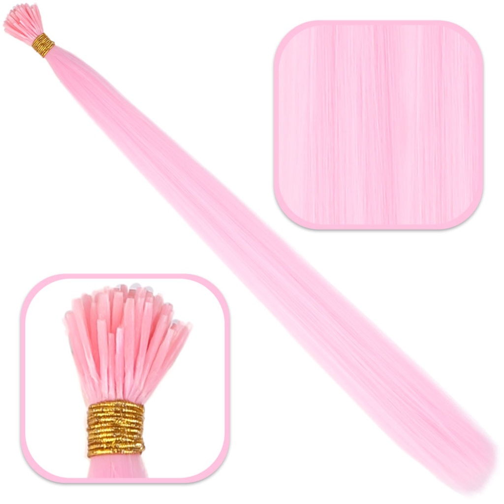 Fiber Sentetik Boncuk Kaynaklık Renkli Saç - Şeker Pembe - 100 Adet