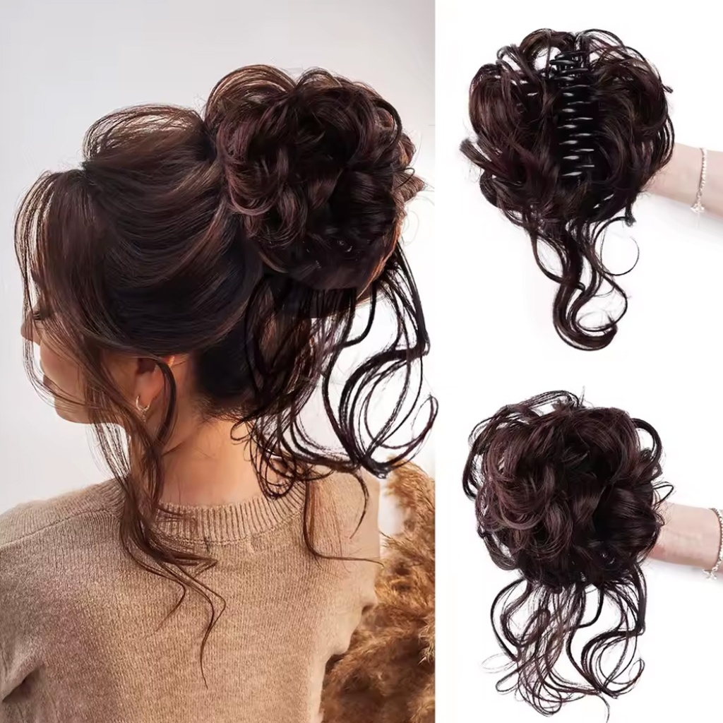 Fiber Sentetik Dalgalı Yarım Ay + 2 Yan Çıt Çıt - Koyu Kahve