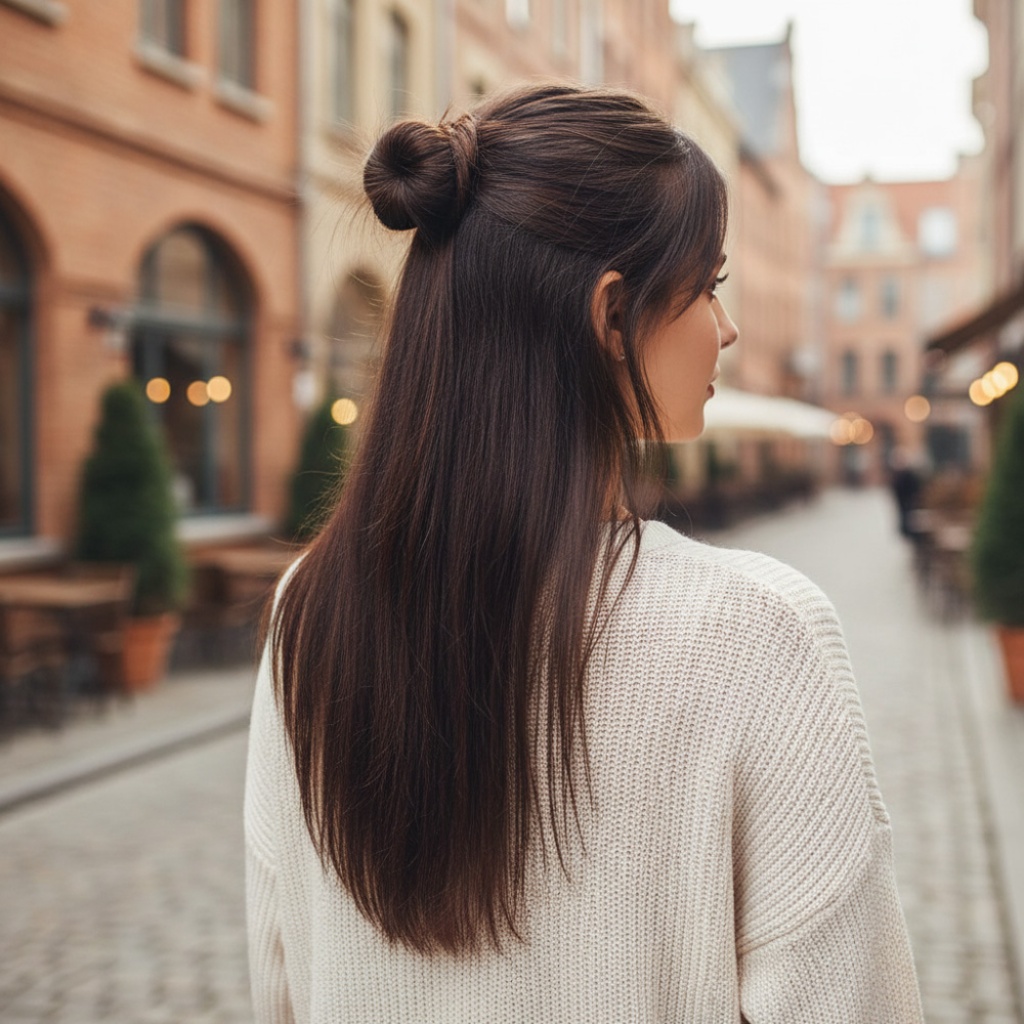 Fiber Sentetik Düz Yarım Ay + 2 Yan Çıt Çıt - Kahverengi