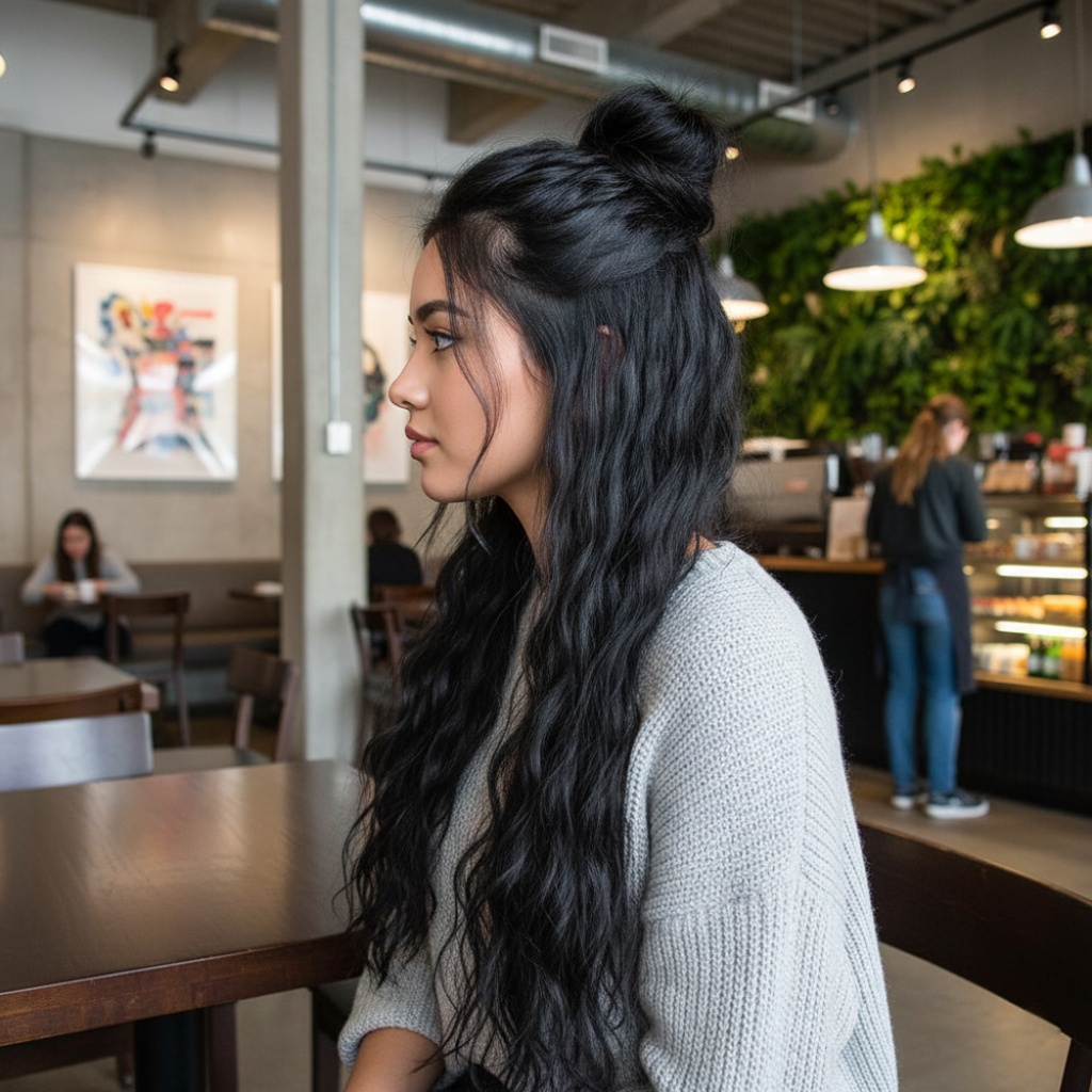 Fiber Sentetik Kabarık Dalgalı 8 Parça Çıt Çıt - Siyah