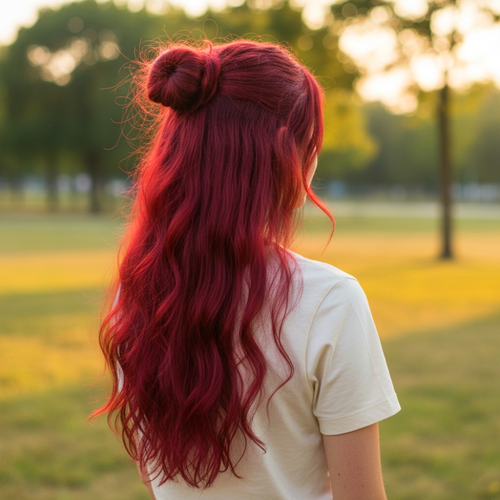 Fiber Sentetik Kabarık Dalgalı Yarım Ay + 2 Yan Çıt Çıt - Kızıl